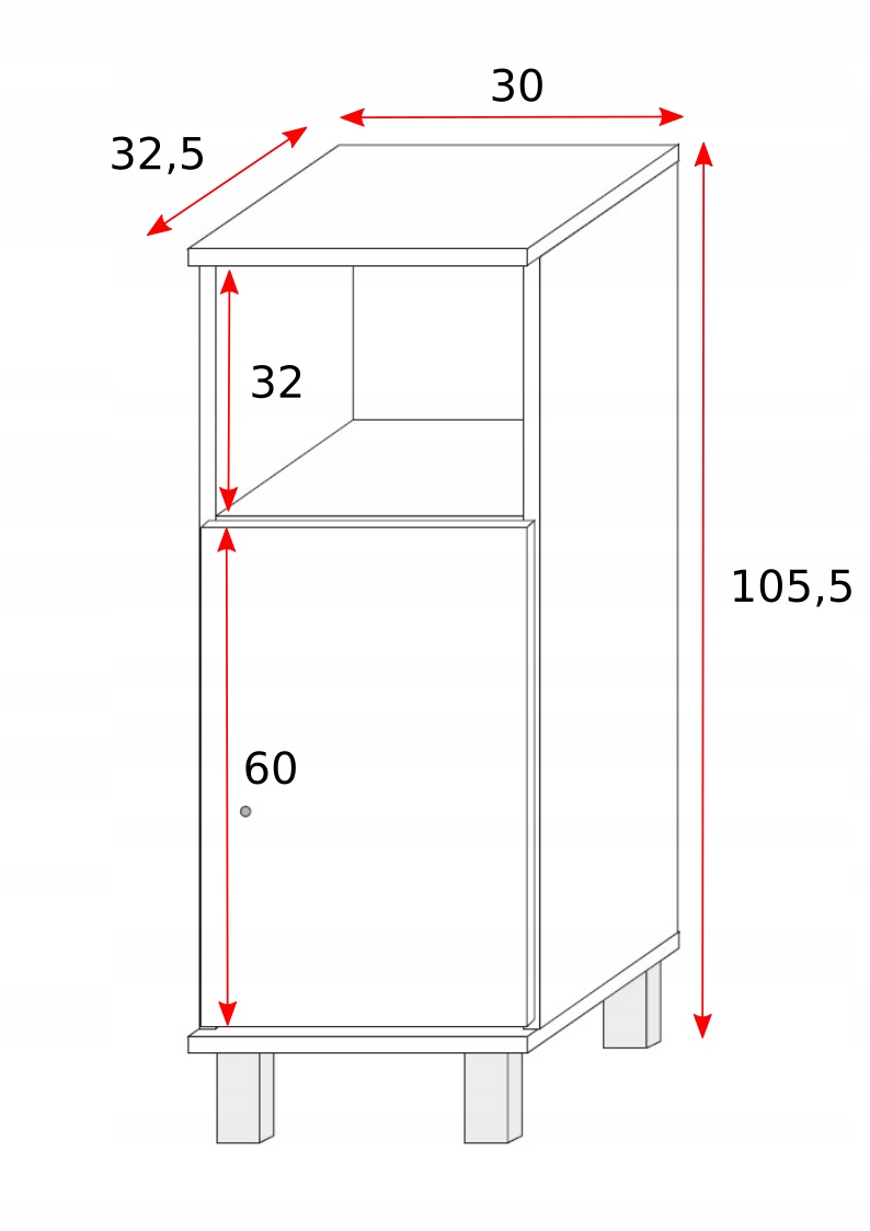 Wymiary (wysokość/szerokość/głębokość): 105,5 cm/30 cm/32,5 cm
