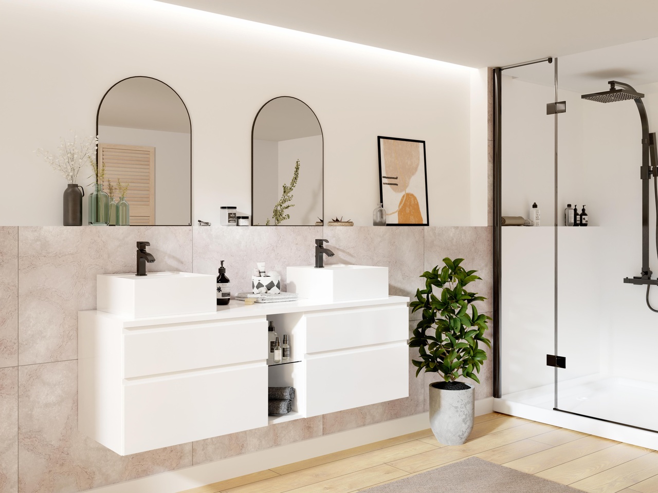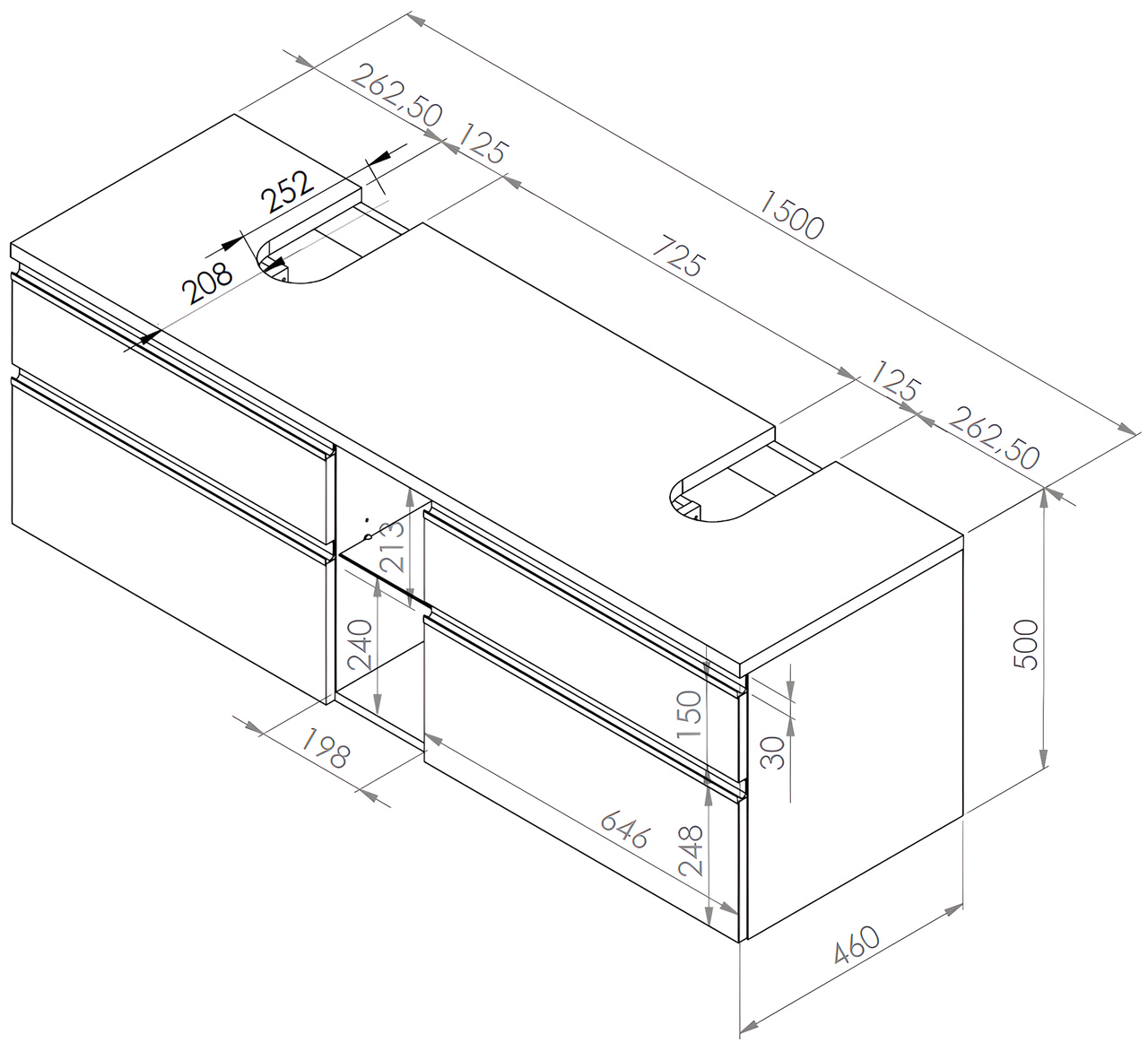 Zawiera 4 szuflady, zapewnia miejsce dla dwóch umywalek.