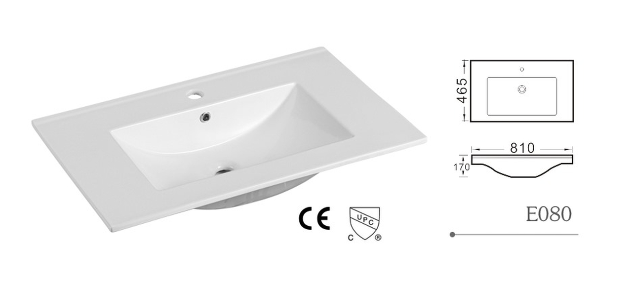 Umywalka wpuszczana z ceramiki sanitarnej E120 w kolorze białym w wymiarze 80 cm.